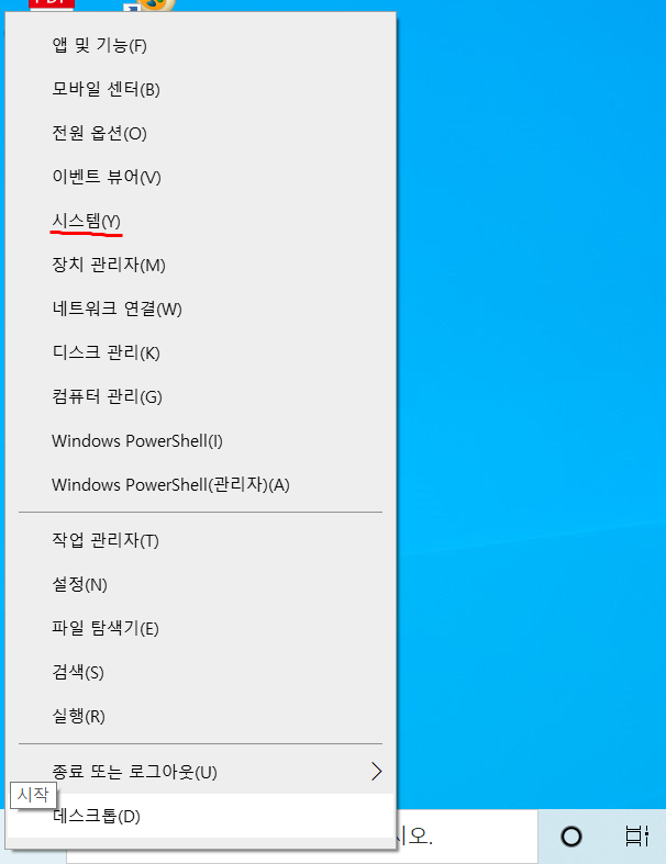 화면 하단에 윈도우 아이콘을 마우스 오른쪽으로 클릭해줍니다