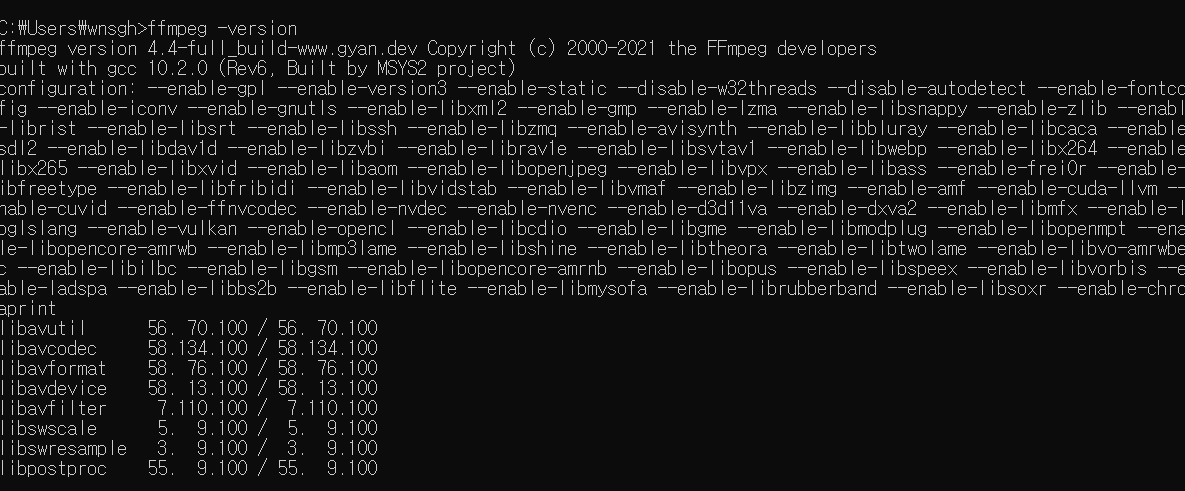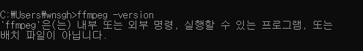 다시 ffmpeg 버전을 확인하기 위해 cmd에 코드를 쳐보니