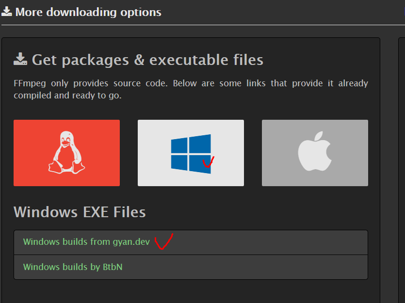 Windows builds from gyan.dev 링크를 클릭합니다.