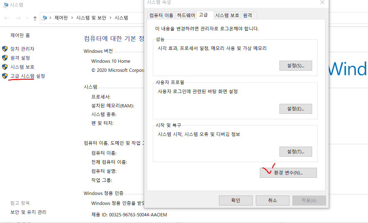 그럼 이 에러를 해결하기 위해 환경변수를 설정해보겠습니다.