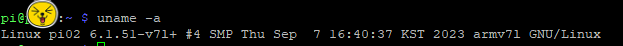 그러면 SD카드를 라즈베리파이에 읽어와서 uname -a로 잘 빌드되었는지 확인하자